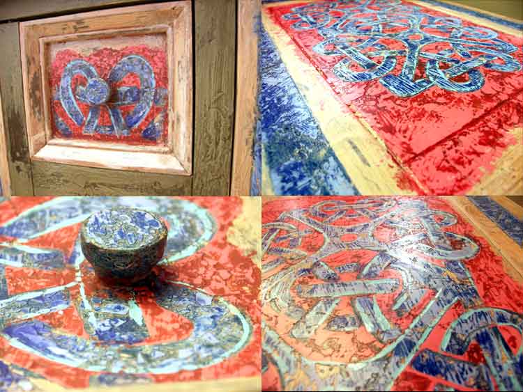 Laque sur meubles Chaque décor celte est traité de façon unique.